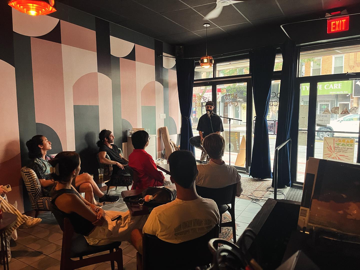 Terraza 7 in Elmhurst is both a live music venue and a community hub that serves as a bridge between cultures. With jazz and folk music from immigrants, music workshops, and progressive activism, Terraza 7 fosters cultural dialogue among the Queens community. Nonprofits often use the space for events, meetings, or fundraisers. The venue exudes a distinctly Latin American atmosphere, with a traditional bar and lounge on the lower level and live music almost every evening on the upper level. A small suspended stage is surrounded by three-tiered wooden bleachers. Performers range from local hip-hop bands to world-renowned musicians. DJs mix everything from soul and R&B to Colombian pop.