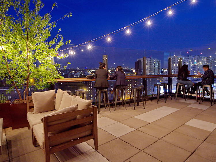 In Flushing, Leaf Bar & Lounge is a rooftop cocktail bar that’s perfect for celebrations, thanks to its stunning view of Manhattan. In addition to excellent craft cocktails, guests can enjoy a wide selection of unique dishes. With its delicious cuisine and live music, Leaf Bar & Lounge offers unforgettable experiences year-round. This rooftop bar brings something unique to Flushing, an area known more for affordable Asian restaurants than vibrant rooftop lounges. Leaf Bar & Lounge blends rustic chic with izakaya-style Asian fare. The menu, created by Taiwanese chef Henry Lin, is filled with unique snacks like pork belly buns and popcorn chicken. Among the bar’s signature cocktails, Pineapple Express is a favorite, featuring vodka, sherry, pineapple puree, and salted caramel syrup.